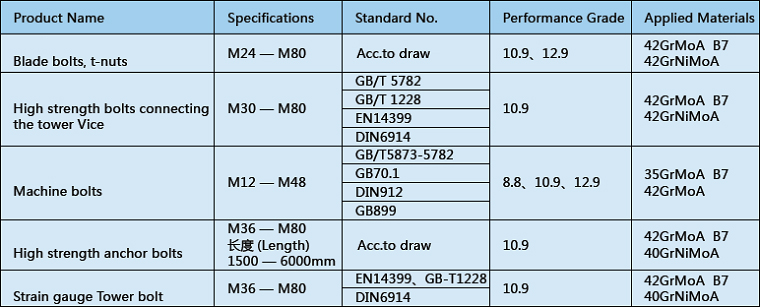 Wind power generation high strength and strain gauge tower bolt series